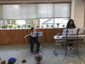 フルートを吹いているこの方は六十の手習いで全くの初心者から桜瑠璃で始めて今年で14年になるそうです。