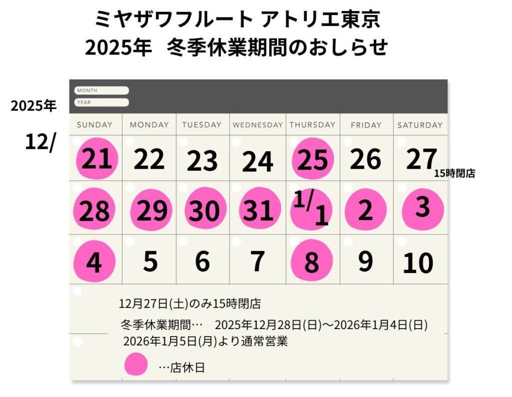 【冬季休業日】2025年12月28日(日)~2026年1月4日(日)
