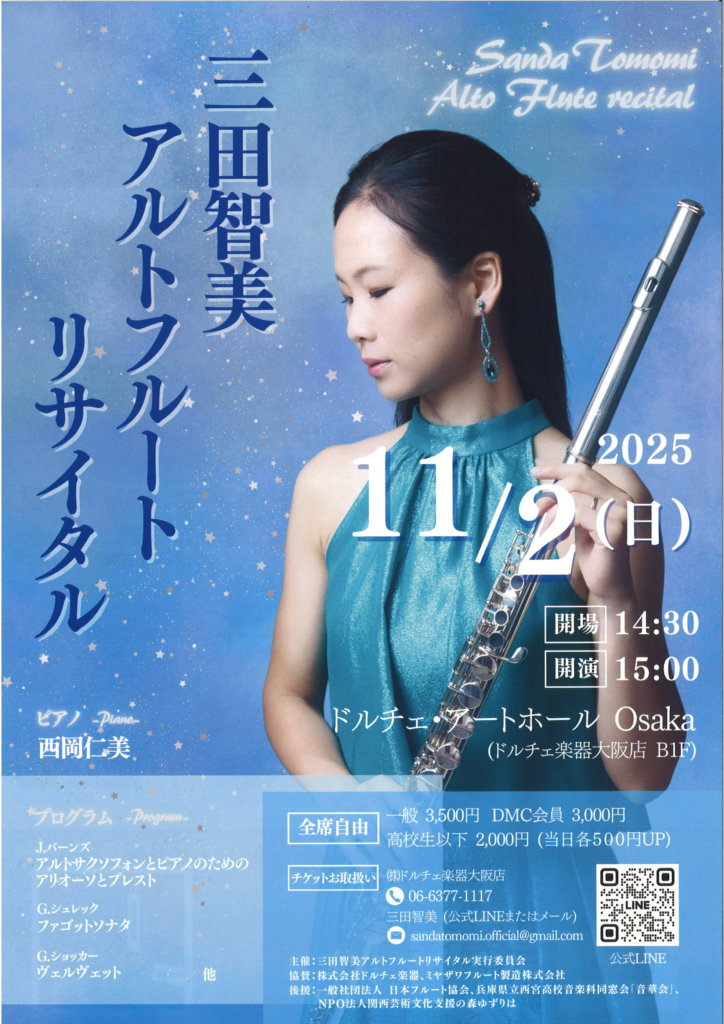 本日は三田智美先生のアルトフルートリサイタルをご紹介いたします♪